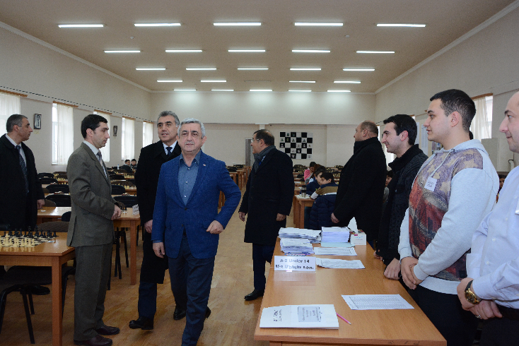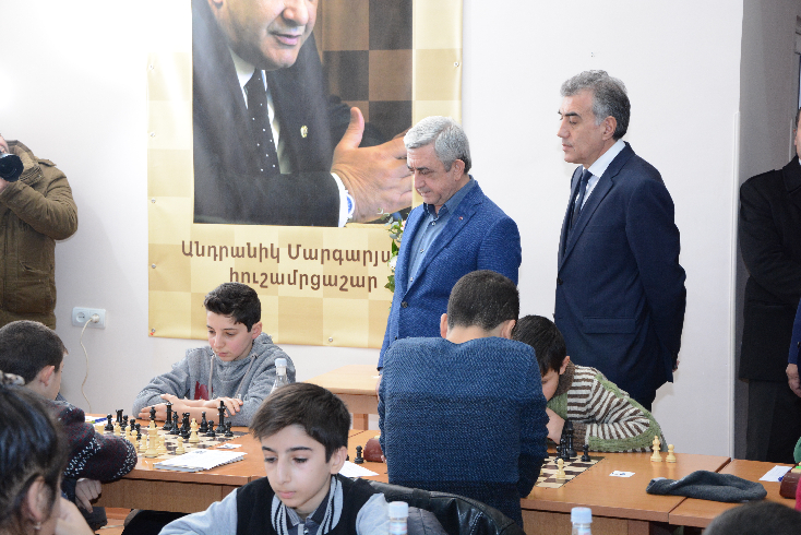 2017-01-15ՀՀ Նախագահ, Հայաստանի շախմատային ֆեդերացիայի նախագահ Սերժ Սարգսյանն այսօր այցելեց Հայաստանի շախմատի ակադեմիա, հետևեց Անդրանիկ Մարգարյանին նվիրված 7-րդ հուշամրցաշարի ընթացքին: