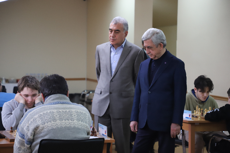 2022-01-15Today, Armenia's third President and President of the Armenian Chess Federation Serj Sargsyan, visited the Chess Academy of Armenia to follow the 12th Andranik Margaryan International Memorial Tournament. The President was present in the halls of the Swiss and Round Robin Tournaments, where over 400 chess players from Yerevan and regions are participating, as well as chess players from Russia, Georgia, and Iran are competing for International Master or Grandmaster norms.