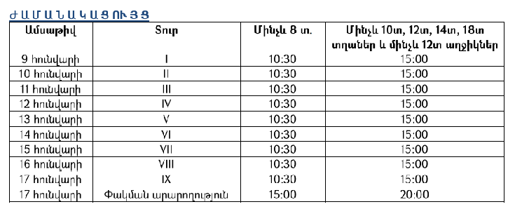 Ստորև ներկայացնում ենք ժամանակացույցը: